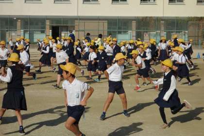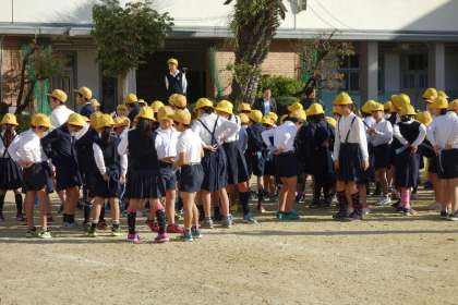 11月最初の児童集会は「しっぽとり」です。はじめに、みんな尻尾をつけて、よーいどんで尻尾を取り合います。今回は班対抗で、一番たくさん尻尾を取った班が優勝です。