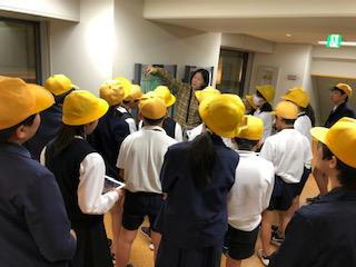 6年生の社会見学、考古学体験教室、最後のミッションはAR難波宮で、タイムワープして遺跡から当時の建物を見てみる。