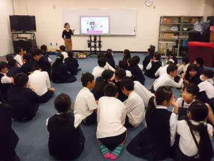 LINE株式会社より、出前授業に来ていただきました。5・6年生に向けて情報モラル教育を行ってもらいました。コミュニケーションには正解はないからこそ、特にインターネットやLINE等SNSは、相手が見えないからこそ考えて送らないといけないことを学びました。身近な例を挙げて、子どもたち自身が考え、わかりやすく教えていただきました。