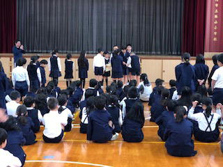 お話のあと、先週実施したドッジボール大会の表彰が児童会によって行われました。
