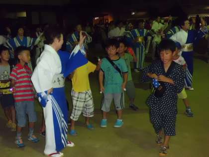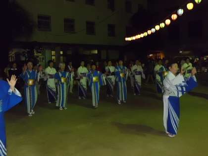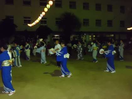 7月25日、午後7時より恒例の「民謡おどり」が、勝山小学校の校庭で開催されました。地域の方やPTAの方の出店や生野区役所の「いくみんパトロール」の方によるゲームコーナーなど、会場は熱気でいっぱいです。そして、なんといっても、メインのおどりは、踊り子さんをはじめ、子ども達、地域の方々と大いに盛り上がっています。明日、26日も午後7時より始まります。夏の一時を、おどりで汗を流してください。ご来場をお待ちしています。