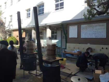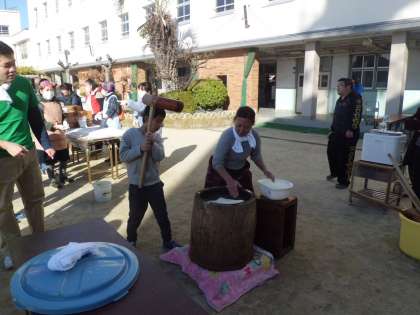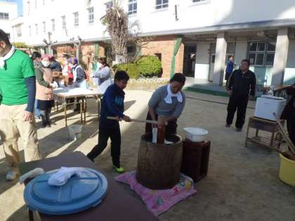 勝山青少年指導員連絡協議会主催のもちつき大会が、勝山小学校の校庭でありました。