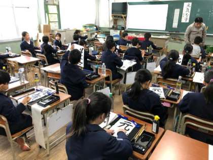 10日、4年生は毛筆の書写の時間に書初めしました。