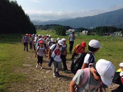 林間学習2日目です。今日もいい天気で、鉢伏山目指して山登りです。暑いけどがんばろう!