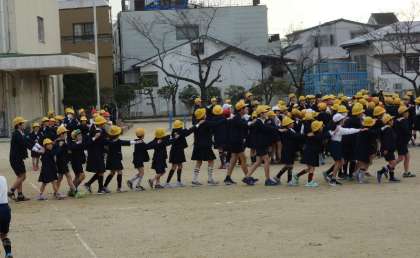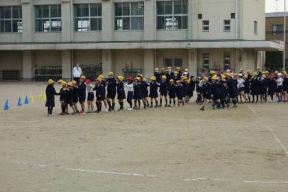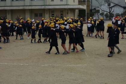 7日の児童集会は、運動場で「じゃんけん列車」。
