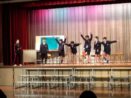 最後の参観は、講堂で、子どもたちだけでプロデュースした卒業劇「メニ メニ メモリーズ」が披露されました。