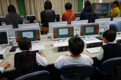 2年2組は学級活動 パソコン教室でプログラミング体験