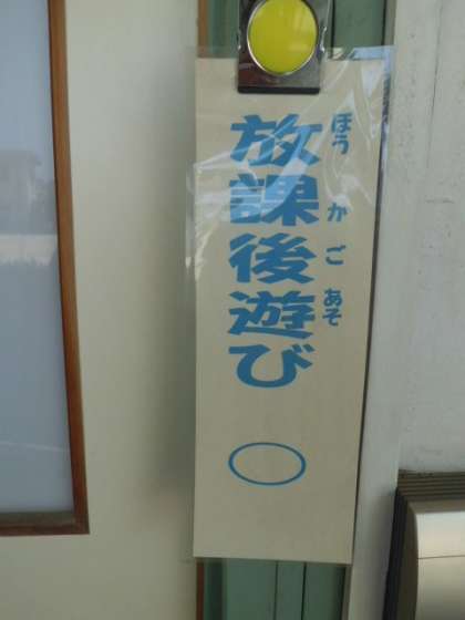 放課後遊びができるできない日を職員室入り口に掲示して、子どもたちに知らせています。今は懇談会中ですので、放課後遊びは「×」でできません。また、大阪市教育委員会から「厳重警戒」「危険」などの毎日の暑さ指数が示されています。7月11日15時からは「危険」の表示です。こんな時には外遊びは中止しています。