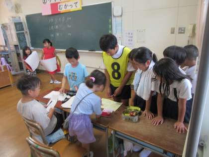 東桃谷小学校との交流の一環で、東桃谷小で行われている「ひがももカーニバル」に勝山小のみんなを招待していただきました。たてわり班でたくさんのお店をまわり、それぞれのお店で工夫されたゲームにみんな楽しんでいました。