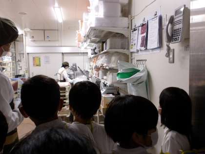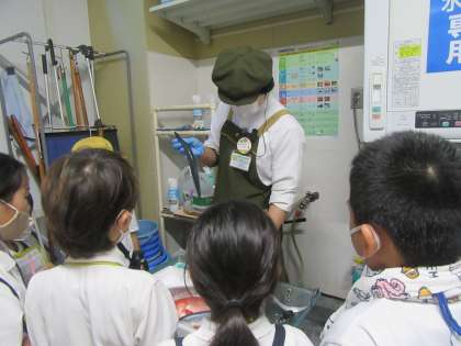 いつもお買い物をしているスーパーですが、特別にバックヤードに入らせていただき、−22度の冷凍庫を体験したり、お肉を切る様子を見学させてもらいました。