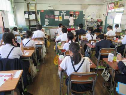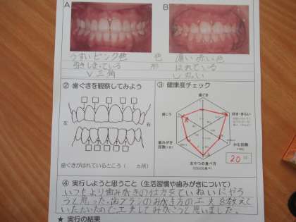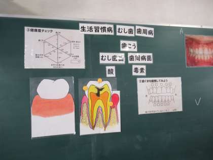 本日は学校歯科医師さん、歯科衛生士さんにお越しいただき、「歯と口の健康教室」を行いました。日頃きれいに歯磨きしているつもりでも、磨き残しや、磨き切れていないところもありました。どのように毎日の歯磨きをすればよいかや、どんな物をどのように食べると虫歯になりやすいかなども教わりました。8020を意識して、健康な歯を維持していきましょう!