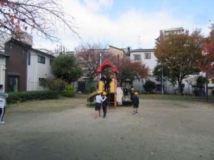 校区の中の、寺田町駅に近い所に、猫間川公園があります。その公園の様子の観察を兼ねて、公園を訪れ、少し遊ぶ時間を持ちました。ちょうど色づいた桜紅葉で、きれいでした。