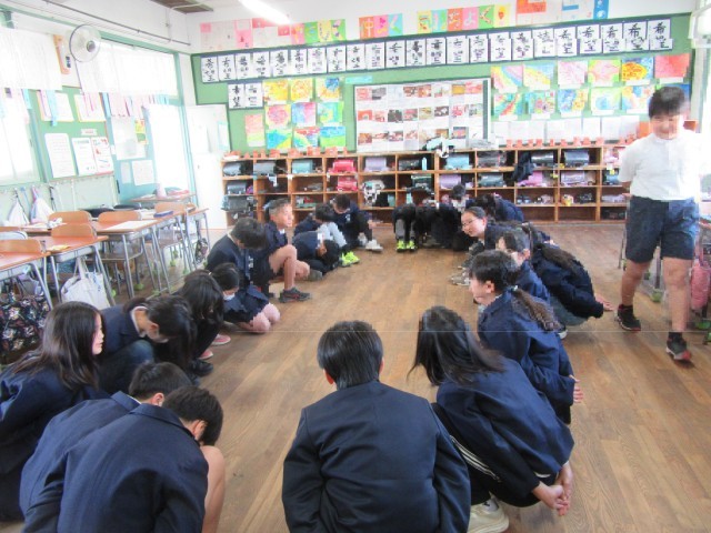5年生でお楽しみ会をしました。「みんなで協力して思い出に残るお楽しみ会にしよう」とめあてを決め、1か月前からイベント係が計画してくれました。それぞれの遊びの司会は、みんなで分担しました。時間通りにできるようにするにはどうすればよいか、一生懸命考えていました。みんな遊びのほかに、「特技発表」の時間もあり、自分の得意なことを発表しました。ダンスや歌、歴代総理大臣発表、着物の着付け…など。普段見られない友達の様子をわくわくしながら見ていました。また3学期にもできるといいですね。