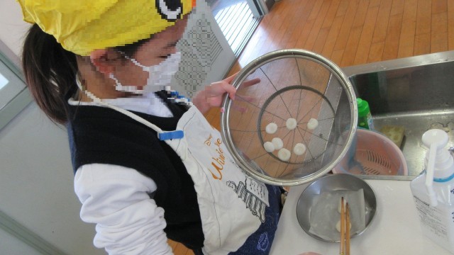 今日は、5年生最後の調理実習で白玉団子作りに取り組みました。