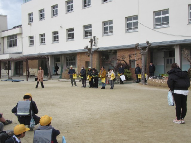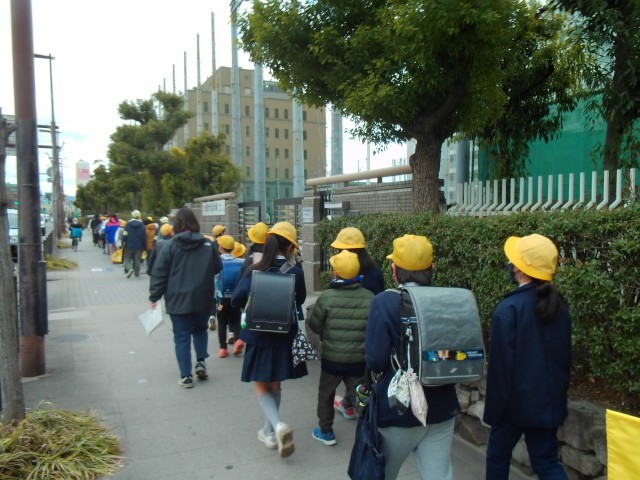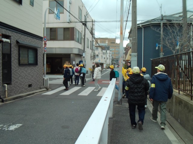 見守り隊の方々や区役所の方々に見守られながら来年度の通学路を確認しました。