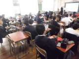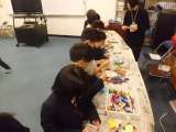 5年生は社会見学で読売新聞社に行くために 早めの弁当昼食です。