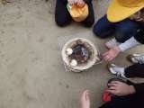 3年生は、七輪を使ってのもち焼き体験授業を行いました。 なかなか炭に火が付かずに...