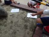 かげのでき方と太陽のうごきを記録、観察する3年生。 時間とともにかげのできる位置...