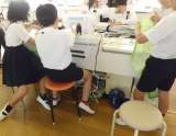 今日は、5年生の家庭科でエプロンづくりを しました。 ミシン、アイロンをうまく使...