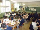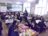 また、いつもは職員室で給食を食べている教職員も 各クラスに入り、児童と一緒に給...
