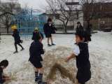 突然の雪に歓声!