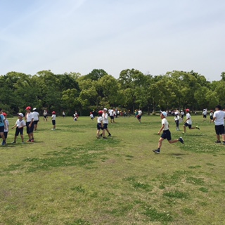 午前中のオリエンテーリングで、しんどがってた子ども達は、昼食後早くも復活して広い芝生で走る〜走る〜走る〜