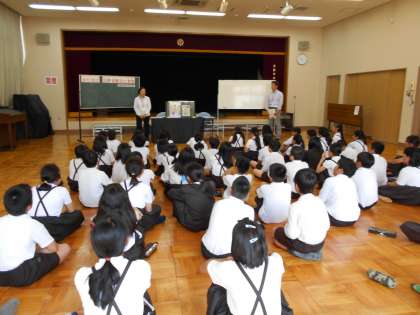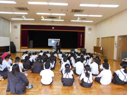 また、5年生には中央少年サポートセンターから、6年生には生野警察署からゲストティーチャーの方に来ていただいて非行防止教室を行いました。