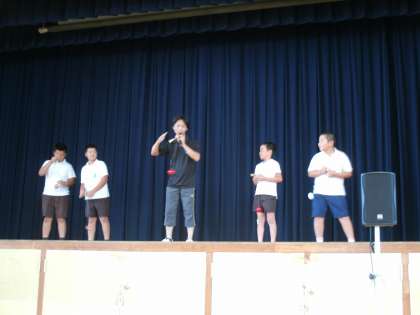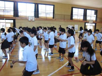 9月10日(水)2・3時間目、3年生と5年生がゲストティーチャーと一緒にけん玉を楽しみました。hidenori7段に級の技を教えてもらったり、ウルトラC級の技を披露してもらったりしました。