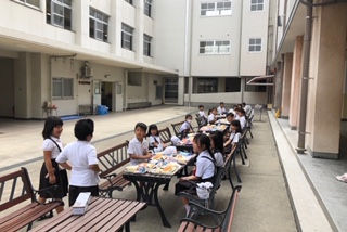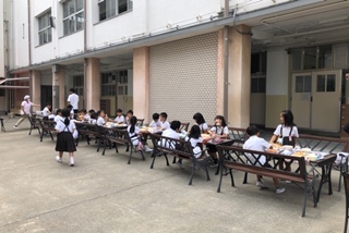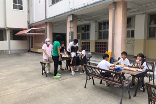過ごしやすい気候になってきたので、ふれあい広場では1年生が青空給食を行いました。
