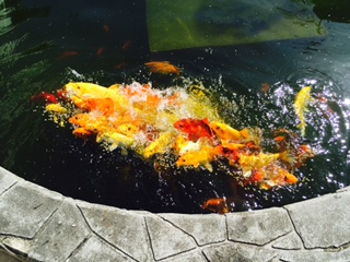 涼しくなって食欲旺盛な池の鯉!
