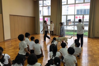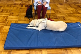 盲導犬についてや、目の不自由な人にはこんな声かけをしたらいいということなど勉強しました。子どもたちはとても真剣に聞いていました。山本さんがお話ししている間、フェリシアはとても行儀よく待っていました。
