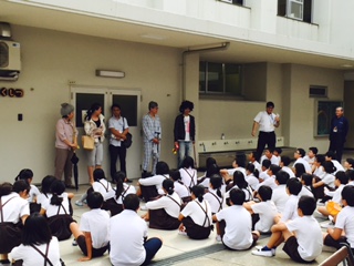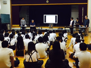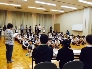 6年生の福祉学習の一つで、認知症のお年寄りを助ける、困っている人に声をかける体験学習をしました。地域包括支援センターと、東中川町づくり協議会と、区役所などのみなさんが来てくださいました。