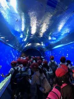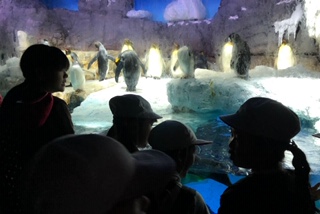 海遊館の中ではグループ行動をしています。リーダーが中心にみんな仲良く館内を回っています。