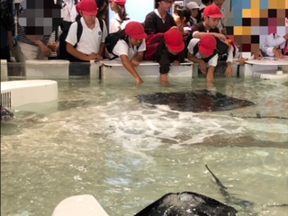 タッチプールなどの体験ブースでも楽しく活動しています。館内の活動が終わり、これから楽しみにしていたお弁当です。