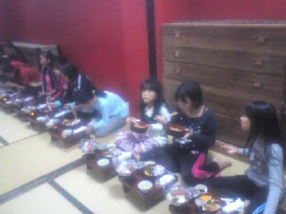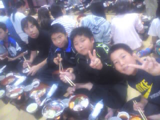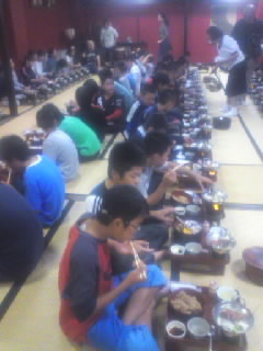 修学旅行1日目の夕飯です。伊勢海老鍋、たこ飯などご当地のごちそうをお膳で食べました。とってもおいしかったので、子ども達は何度もおかわりをして、おなかいっぱいたべました。(お膳に向って座って食べるのはちょっと苦手だったかな?)