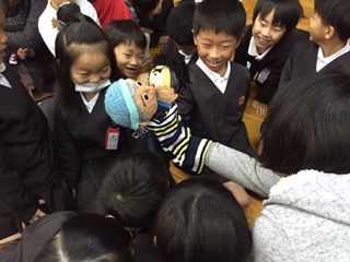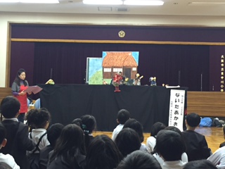 更生保護女性会の皆さんが、1年生に人形劇をしてくださいました。『大きなかぶら』と『ないた赤鬼』です。終わってから、人形を触らせてもらったり、感想を聞いてもらったりして楽しい時間を過ごしました。ありがとうございました。