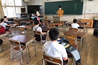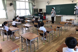 学校に子どもたちの元気な声が戻ってきました。感染予防の対策をしっかりして、登校日を楽しく過ごしています。