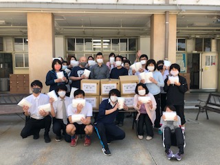 新今里7丁目にある株式会社マトリクスさんからマスク3000枚と消毒液の寄付をいただきました。