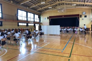 ・教室の人数を20人程度にする。学級の人数が30人以上の5、6年生は講堂などの広い部屋を使っています。