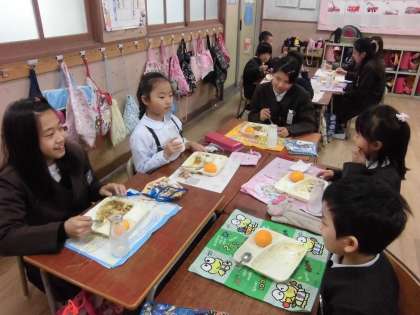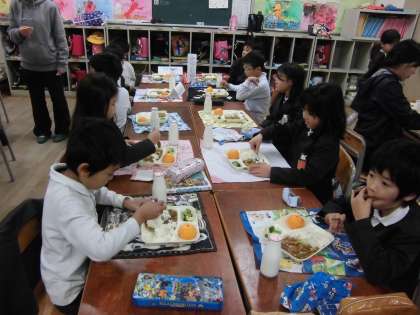 いつもと違う雰囲気なので、初めはもじもじしていましたが、徐々にいろんな話をして楽しみながら給食を食べることができました。