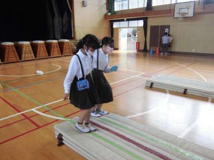 3年生の授業で、アイマスクをつけて歩く体験や、誘導して介助する体験をしました。学習を通して、視覚障がいがある人々の抱える危険や不安に気付き、自分たちに何ができるかを考えることができました。