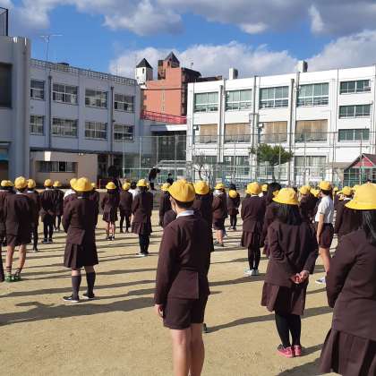 今年は授業時数の確保のため、午前中は授業を行い、午後からは給食を実施し、5時間目に終業式を行いました。今年度の取組では、3密を避けるために、運動場にて間隔を開けて並んで行っています。