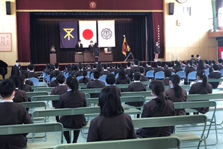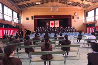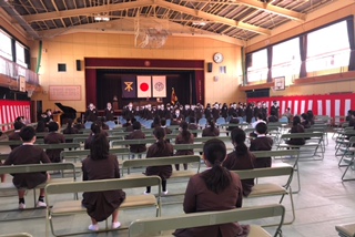 17日は卒業式予行を行いました。卒業式は感染症対策のためさまざまな制限があります。在校生は代表の2名しか出席できません。そこで、本番お祝いすることができない5年生に予行に参加してお祝いしてもらいました。