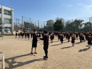 3月24日、修了式を行いました。1年間の締めくくりにふさわしいとても気持ちの良い青空でした。