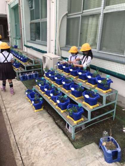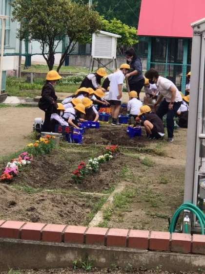 トマトと芋の苗を植えました。