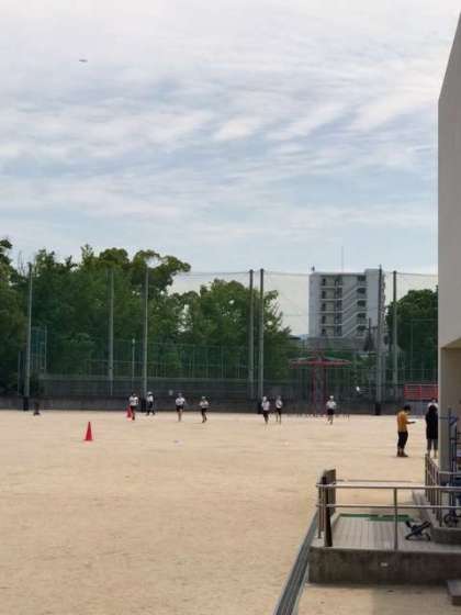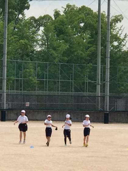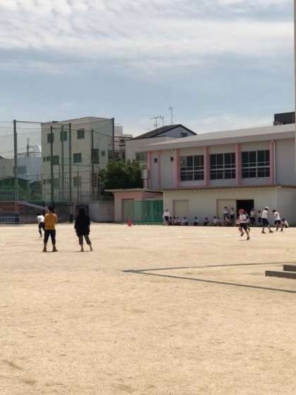 シャトルランです。水分補給をしマスクを外してがんばってます。