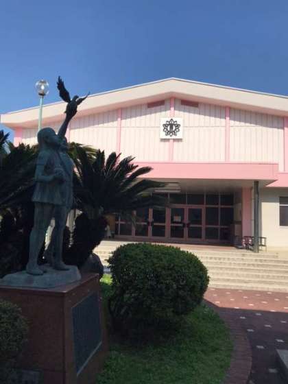 昭和60年体育館が完成しました。記念にたてられた記念像です。
