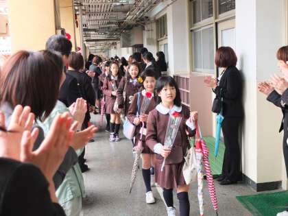 あいにくの天候になってしまいましたが、5年生や保護者・教職員の間を通って玄関まで行くときの表情は、とても晴れ晴れしていました。