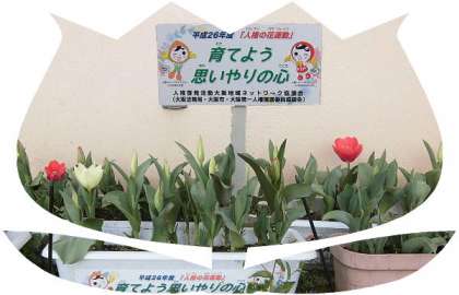 「人権の花運動」で3年生が植えたチューリップもきれいに咲き、春休みにいきいきに来ていた3年生と近くの保育所に持っていきました。