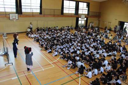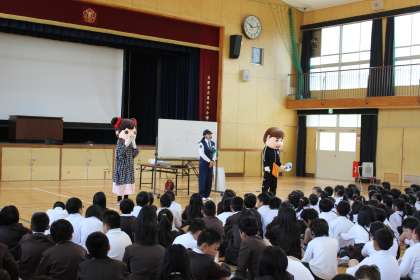 2時間目は全員が講堂に集まって警察の方を招き「防犯教室」を行いました。